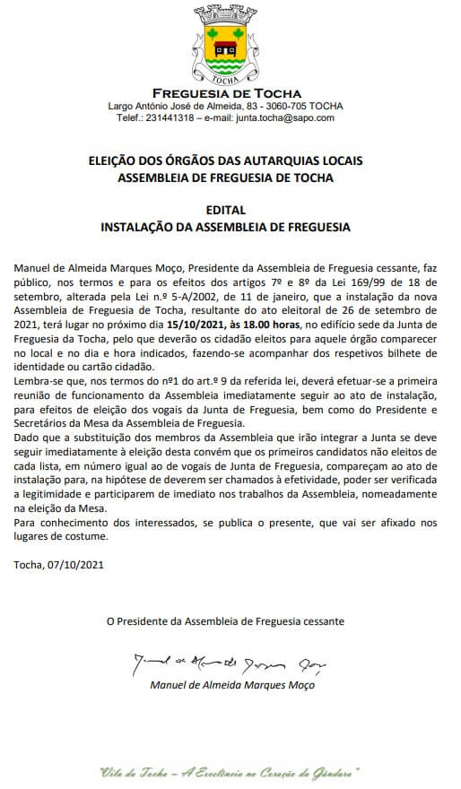 junta.tocha@sapo.pt | geral@freguesiadetocha.pt