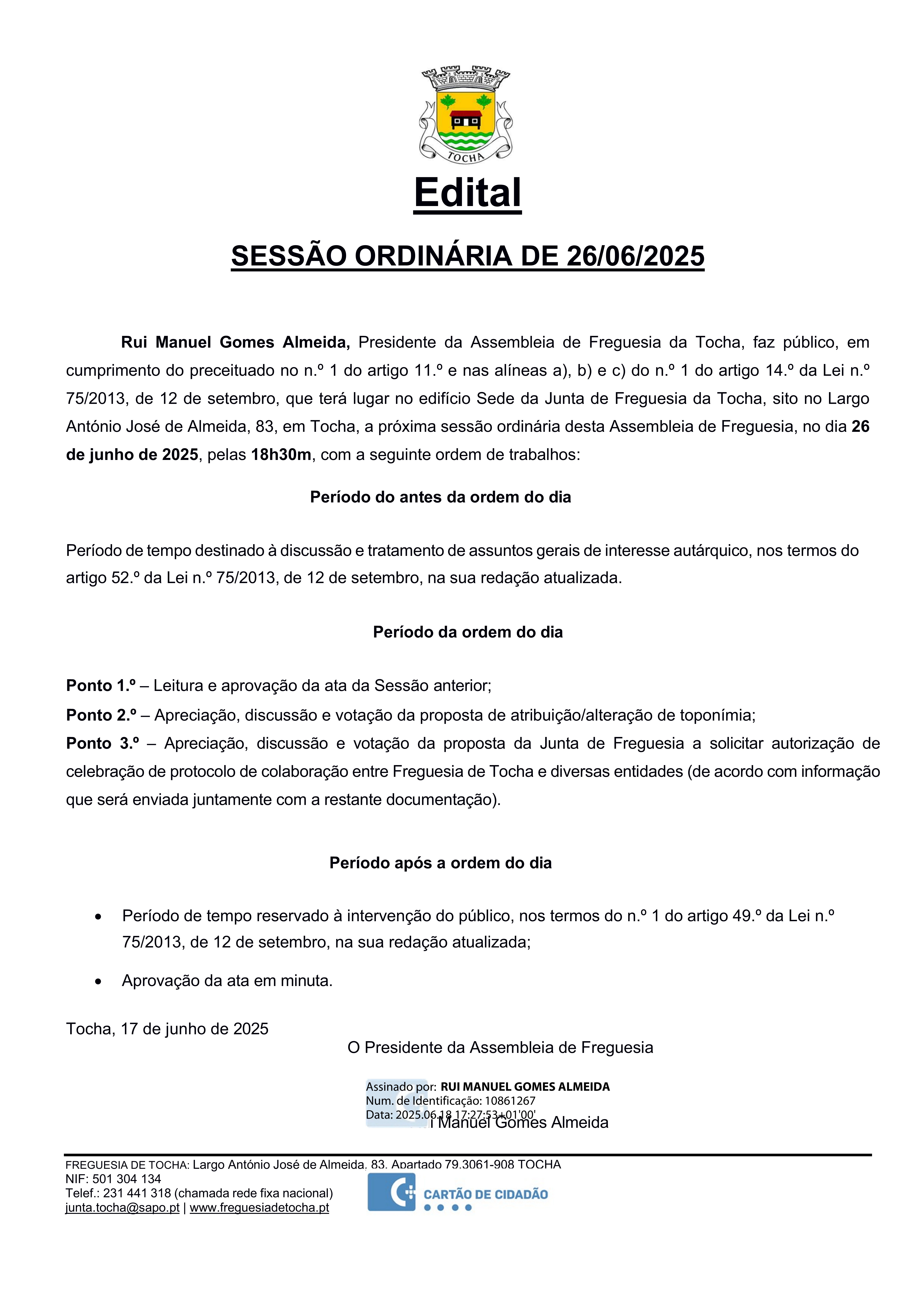Edital | SESSÃO ORDINÁRIA DE 26/06/2025